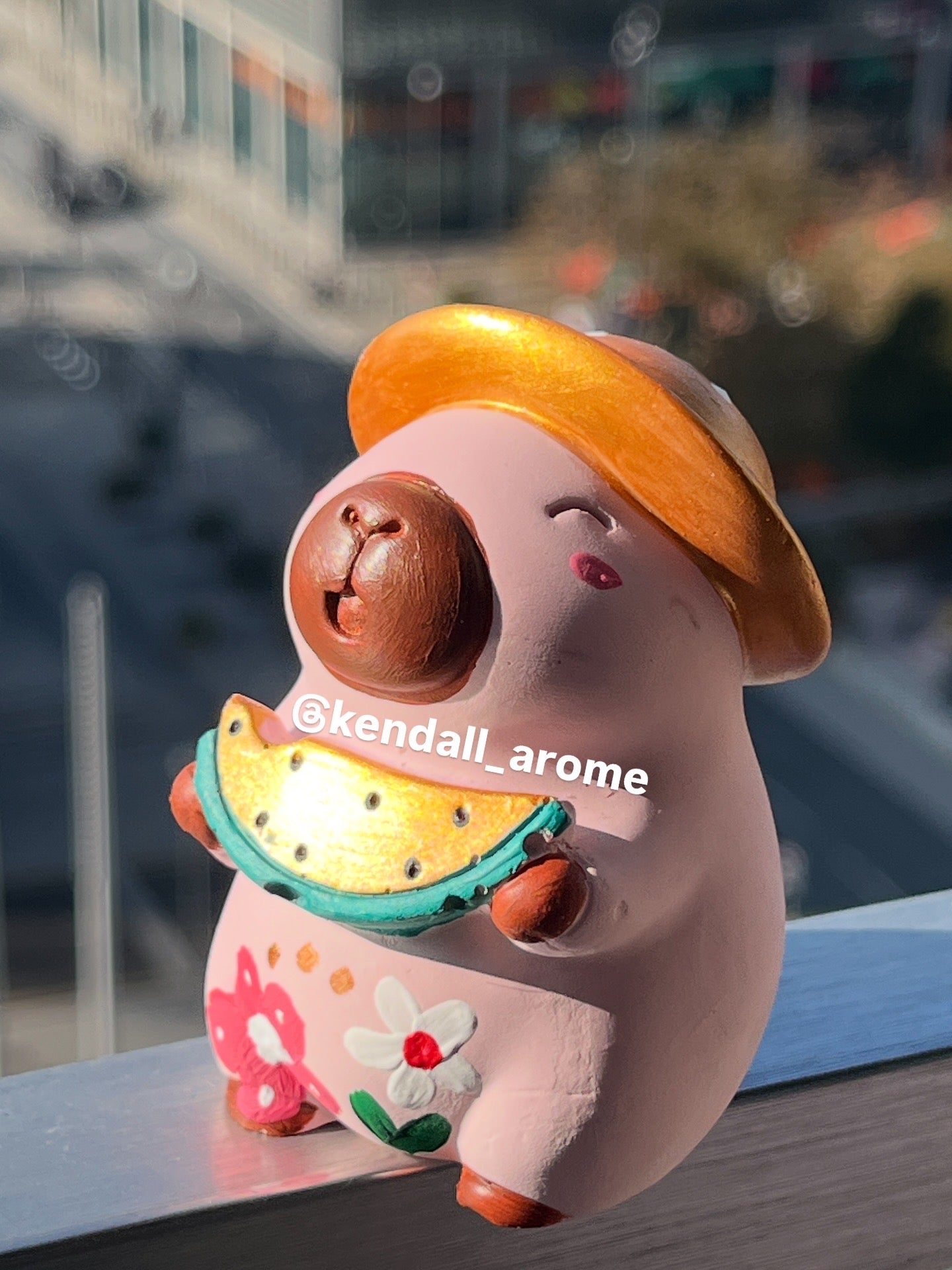 Handmade and fully designed by me 🧡 Each one is crafted with love using calming aroma stone materials — and painted with a sweet flower theme to bring peace, cheer, and natural beauty to your space 🌸🌿 Whether you need some zen vibes, positive energy, or just a cute little face surrounded by flowers to brighten your day — this capybara’s got you covered! ☀️